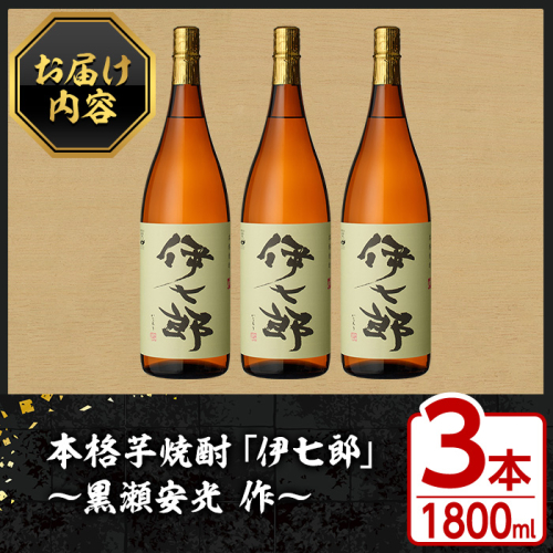 鹿児島本格芋焼酎「伊七郎」黒瀬安光作(1.8L×3本)国産 芋焼酎 いも焼酎 お酒 一升瓶 セット 限定焼酎 アルコール 常温保存【海連】akn016-10 166014 - 鹿児島県阿久根市