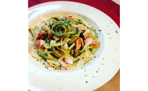 小麦粉を使用したうどんですが、食感はもちもち、のどごしはつるつるで、まるで手打ちパスタのようです。ゆでると、みどりがより美しくなります。