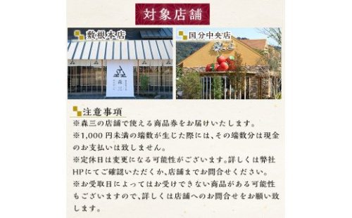 A0-279 森三商品券3枚セット(3,000円分)【森三】霧島市 チケット 商品券 菓子 お菓子 洋菓子 和菓子 ケーキ スイーツ 166244 - 鹿児島県霧島市