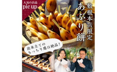 和モダンな雰囲気の敷根本店 限定販売の「あぶり餅」も人気です!