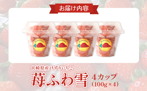 「苺ふわ雪」イチゴ農家のけずりいちご 約100g×4カップ いちご イチゴ 苺 フルーツ 冷凍 夏 スイーツ 冷凍イチゴ くだもの 果物 九州 宮崎 送料無料 氷 アイス