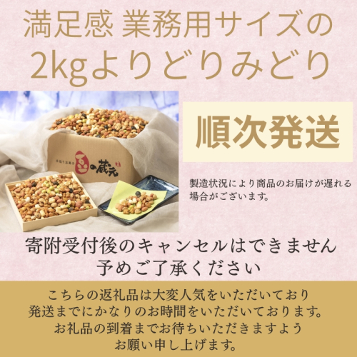 【令和8年1月7日より順次発送】豆の蔵元 満足感 業務用サイズ2.0kg よりどりみどり 豆の蔵元 おかき 豆 豆菓子 せんべい 進物 お菓子 大容量 お徳用 豆菓子 大容量 送料無料