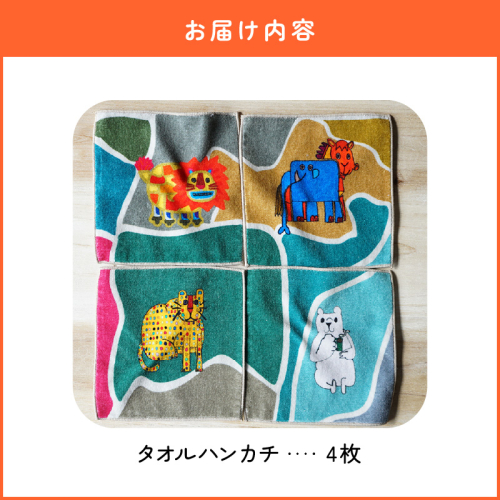 - タオルハンカチWILD ANIMALS 4枚セット