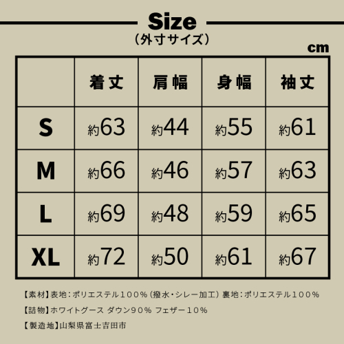 ~MADE IN JAPAN~にこだわり、軽さと暖かさを追求し、富士吉田市の工場で厳選を重ねた素材・生地・上品質のダウン(羽毛)を使用し、より贅沢なダウンジャケットを造り上げております。