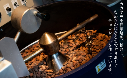 ペルー産のカカオ豆を自家焙煎し、粉砕し、なめらかになるまですり潰し、色とりどりの至福のショコラに仕上げました。