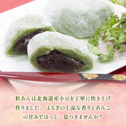 草餅のよもぎは(国産)を使い中の餡は粒餡(北海道産小豆)を使用した、やさしい甘さのくさもちです。