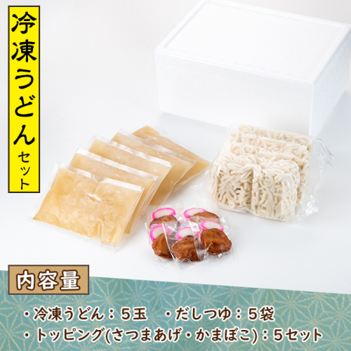 冷凍うどん(5食入)だしつゆとさつまあげ、かまぼこのトッピング付!うどん 饂飩 麺 出汁 つゆ 薩摩揚げ さつま揚げ かまぼこ【まるじゅ本舗】akn002-02 171260 - 鹿児島県阿久根市