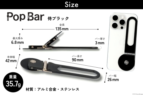 - BG061 Pop Bar <侍ブラック> 3in1 スマホ スタンド × グリップ × スティック 【 MagSafe対応 自撮り棒 360°回転 軽量 スリム 卓上 iPhone Android iPad タブレット マルチスタンド 】