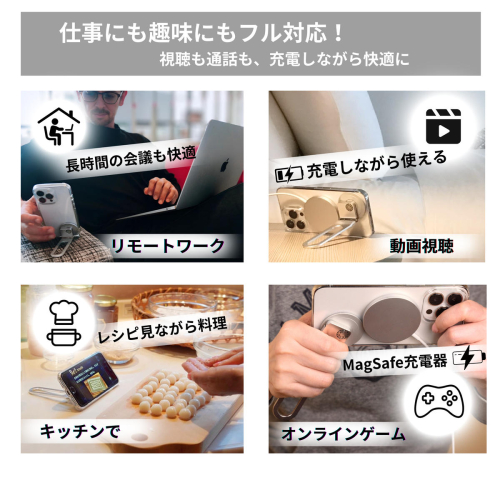 自由自在で多様なグリップスタイルが生まれます。手首が捻じれずスマホが保持できるので負担が軽減されます。