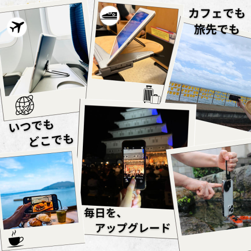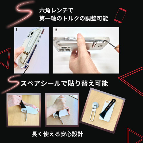 スタンド・グリップ・スティックの3つの機能を一挙に搭載させた、国内・米国で特許取得したスマホアクセサリーです。