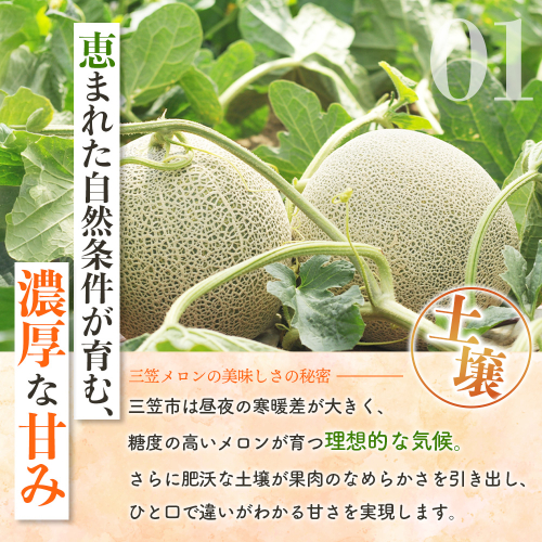 《2026年分受付中》とろける食感と甘い香り北海道三笠メロン2玉入(2.6kg以上)【0100103】