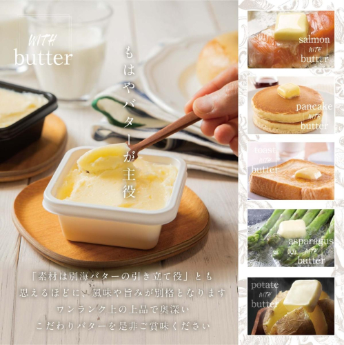 乳牛の数10万頭、年間生乳生産量50万トン、文字通り酪農日本一を誇る北海道別海町がお届けする、伝統的なチャーン製法のこだわりバターです。水分値を極限まで抑え、塩分を控えているため、バター本来の風味がお楽しみいただけます。