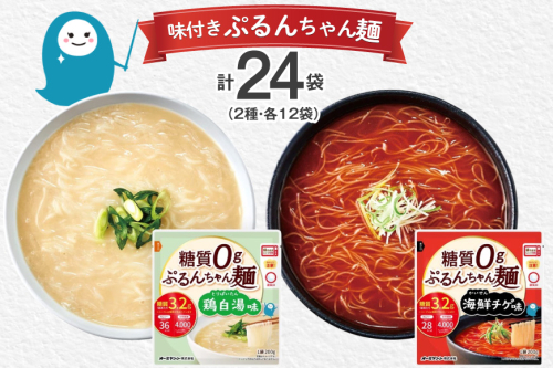 麺 ぷるんちゃん 味付き麺 タイプ 鶏白湯味 海鮮チゲ味 200g 各12袋 計24袋 [オーミケンシ(宇美フーズ) 福岡県 宇美町 um40azo700001] 低糖質麺 低糖質 ぷるんちゃん麺 低カロリー カロリーオフ ヘルシー麺 置き換え麺