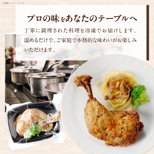 4〜5時間かけ、低温のオイルでゆっくりと火を通します。 皮は香ばしく、身は箸でほぐれる柔らかさです。 レストランで人気のメニューがご家庭でも楽しめるようになりました! 今日はちょっと特別なお料理にしたい時や、ちょっとしたホームパーティーも手軽に準備していただけます! 【お召し上がり方】 電子レンジで7分あたためてお召し上がりください。 解凍後は当日中にお召し上がりください。 【原材料】 鶏肉(アメリカ産)、ブロッコリー(国産)、パスタ、きのこ類、オリーブオイル、胡椒、ラード 【保存方法】 冷凍 【配送方法】 冷凍  【地場産品基準】 3号:区域内において、原材料の仕入れから味付け・調理、急速冷凍、梱包までのすべての工程を行うことにより相応の付加価値を生じているため