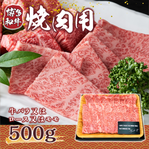 - 博多和牛 焼肉用 500g [MEAT PLUS 福岡県 宇美町 um40azp010003] 牛肉 焼肉 焼き肉 肉 肩ロース肉 肩バラ肉 モモ肉 和牛