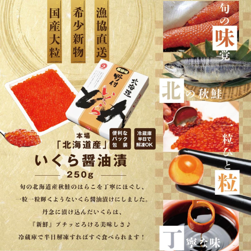 - 計1,5kg【250g×1パック 6回 お届け】 6ヵ月 定期便 漁協 直送!本場「北海道」 いくら 醤油漬け【NKM06NQ13】( いくら いくら醤油漬け いくら醤油漬 醤油いくら 鮭いくら 国産いくら 北海道産いくら 地場産いくら 道産いくら 別海町 ふるさと納税 ふるさと ikura )