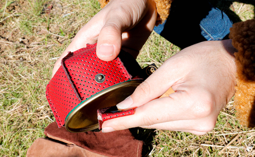 500缶サイズのOD缶にぴったりフィットするデザインになっており、底部のベルトをボタンで留めればガス缶からは外れません。