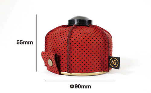 高級車の座席シートにも使われているパンチング加工を施したエシカルレザーを使用。耐久性が非常に高く、傷や汚れに強いのが特長で、アウトドアにも適した素材です。110缶サイズのOD缶にぴったりフィットするデザインになっており、底部のベルトをボタンで留めればガス缶からは外れません。カバーを付けることで、無機質なガス缶をドレスアップできるのはもちろんですが、外部からの衝撃保護にも効果的です。また通気性と耐熱性に優れたエシカルレザーですので、ガスタンクの過熱のリスクを防ぎます。きっとアウトドア初心者からベテランまで満足できるアイテムです。