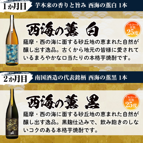 No.766 <定期便・全6回(連続)>南国酒造の厳選芋焼酎定期便Bコース(1800ml×6銘柄各1本・合計10.8L)