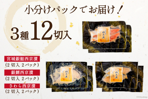 漬魚 詰め合わせ 西京漬 3種 12切入 計840g [カネダイ 宮城県 気仙沼市 20565742] ★宮城県産銀鮭使用★ 魚 魚介類 銀鮭 銀鱈 さわら 冷凍 セット 個包装 おかず 焼き魚 保存食 長期保存 食べ比べ 本格的 簡単 時短 高級 漬け魚 切り身 切身