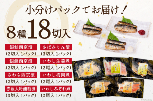 漬魚 5種 12切 いわし煮魚 3種 6切 詰め合わせ 18切入 計1.1kg [カネダイ 宮城県 気仙沼市 20565369] ★宮城県産銀鮭使用★ 魚 魚介類 西京漬 粕漬 銀鮭 銀鱈 サバ 冷凍 セット 個包装 焼き魚 漬け魚 切り身 切身 レビューキャンペーン