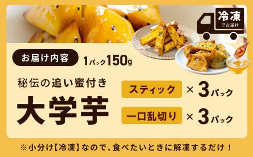 - 大学芋 約150g×6パック(スティック3パック・乱切り3パック)
