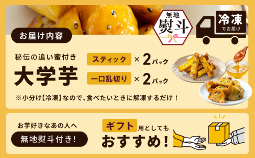 【無地熨斗】こだわり大学芋 150g×4P 【追い蜜付き 2種セット 合計 600g 小分け スイーツ 冷凍 大学いも 北国からの贈り物】 005A670