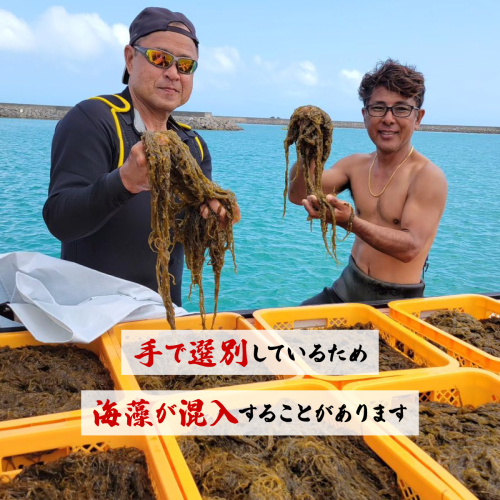 やわらかく、粘りがつよい。天然もずくの特徴です。天然ものは「歯ごたえ」が違います、ぜひ一度ご賞味ください。
