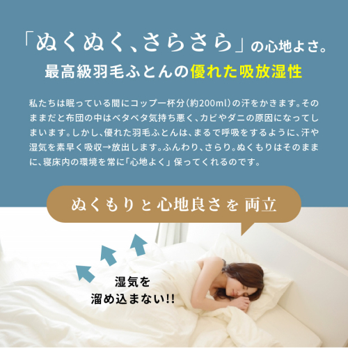 - 【抗ウイルス・抗菌加工】羽毛合掛けふとんホワイトグース90%(ダブル)【創業100年】