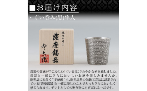 B5-008 薩摩錫器 ぐい呑み(黒)隼人【薩摩錫器工芸館】 178959 - 鹿児島県霧島市