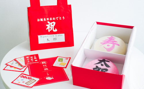 明治40年創業の老舗御菓子司「大黒屋丹治」から、お子様の1歳のお誕生日を祝う『紅白誕生餅と背負い袋のセット』をお届けします。お餅を作り続けて100年余り。熟練の職人が一つひとつ丹精を込めて、お子様のための紅白餅をお作りします。
