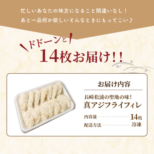 「アジフライの聖地 松浦」真アジフライフィレ(14枚)×1P ( アジ フライ 海鮮 アジフライ おつまみ 鯵 あじ お惣菜 時短料理 )【A7-067】