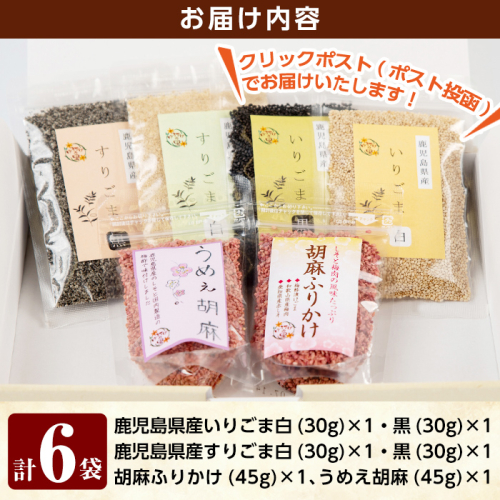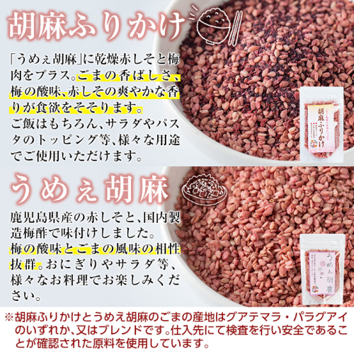 A0-297 鹿児島県産ごま4袋・胡麻ふりかけ1袋・うめえ胡麻1袋セット(計6袋)【ゆうすげの里】 180131 - 鹿児島県霧島市