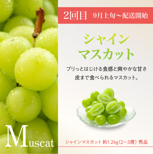 【定期便2回目】:シャインマスカット 約1.2kg(2~3房)秀品