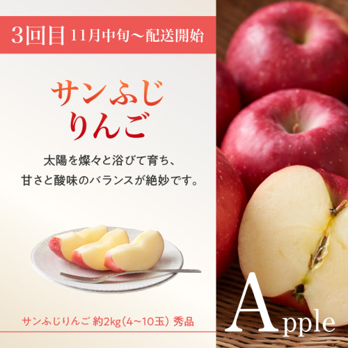 【定期便3回目】:サンふじりんご 約2kg(4~10玉)秀品