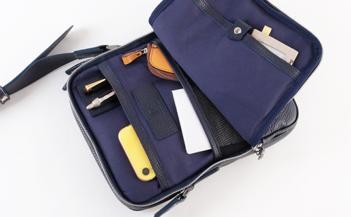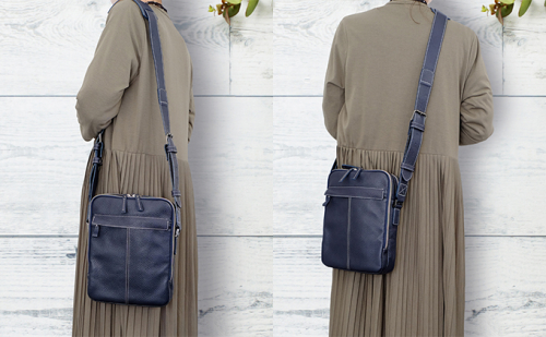 牛革 ショルダーバック縦型 紺 181810 - 北海道滝川市