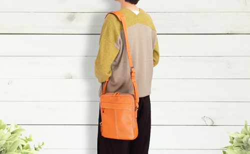 牛革 ショルダーバック縦型 オレンジ