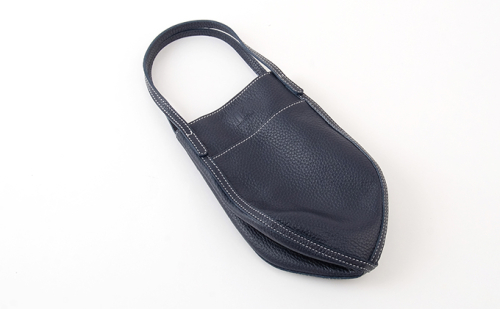 曲線が可愛いミニバック。傷が目立たない牛革を使用。旅先のホテルや街歩きのお供に大活躍。薄くたためるのでとっても便利。