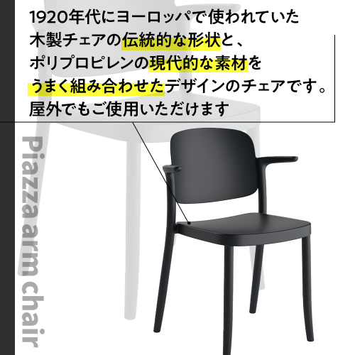 1920年代にヨーロッパで使われていた木製チェアの伝統的な形状と、ポリプロピレンの現代的な素材をうまく組み合わせたデザインのチェアです。