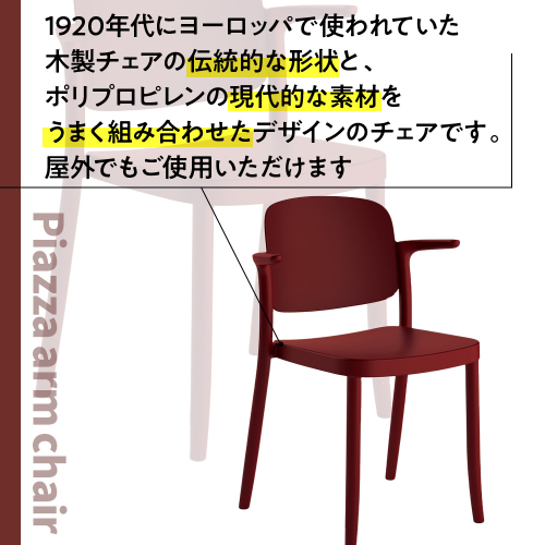 1920年代にヨーロッパで使われていた木製チェアの伝統的な形状と、ポリプロピレンの現代的な素材をうまく組み合わせたデザインのチェアです。