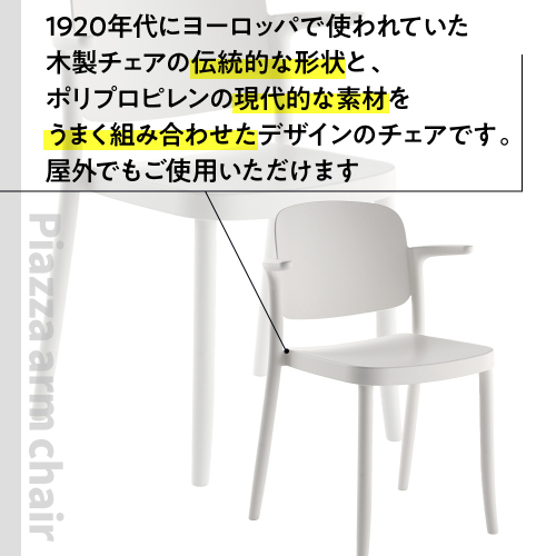 1920年代にヨーロッパで使われていた木製チェアの伝統的な形状と、ポリプロピレンの現代的な素材をうまく組み合わせたデザインのチェアです。