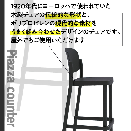 1920年代にヨーロッパで使われていた木製チェアの伝統的な形状と、ポリプロピレンの現代的な素材をうまく組み合わせたデザインのチェアです。