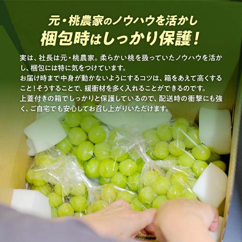 ・シャインマスカットは種なし葡萄ですがまれに種が入っている場合がございます。予めご了承ください。
