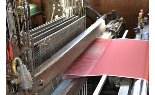 経糸に双糸(撚り合わせた糸)・緯糸に単糸(一本の糸)を使用する特殊な織り方は他にはない山梨の織物の特徴で、一日に4m程度しか織ることのできない大変貴重な生地です。