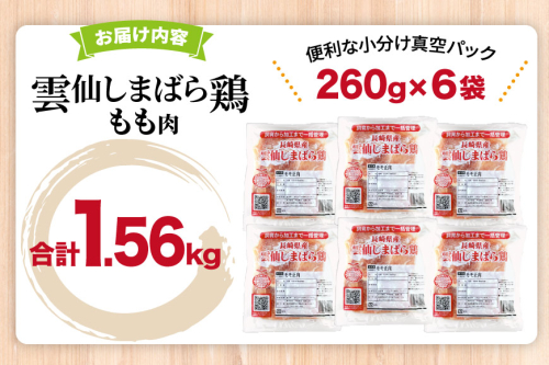 BI082 鶏肉 雲仙しまばら鶏 もも肉 260g 6袋 計1.56kg [ 小分け 鶏もも肉 若鶏 とりもも肉 とりもも 肉 チキン 真空パック 大光食品 長崎県 島原市 ]