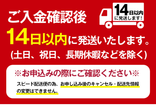 スピード配送便の為、お申込み後のキャンセル・配送先情報の変更はできません。