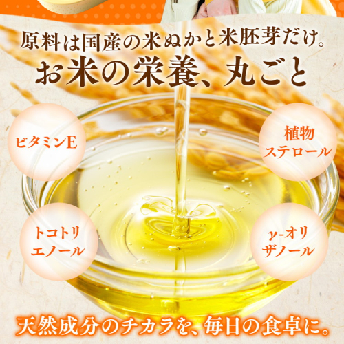 大人気のこめ油の大容量セットです!揚げもの、炒めもの、ドレッシング、通常のサラダ油と同様に普段のお料理にお使いいただけます。国産原料を使用、素材の持ち味を生かすさらっとした風味の良さ。どんな料理にもおすすめ!ビタミンE、トコトリエノールなどの健康に良いとされる成分を含有。油の食物繊維といわれる植物ステロールも豊富に含有しています。