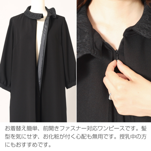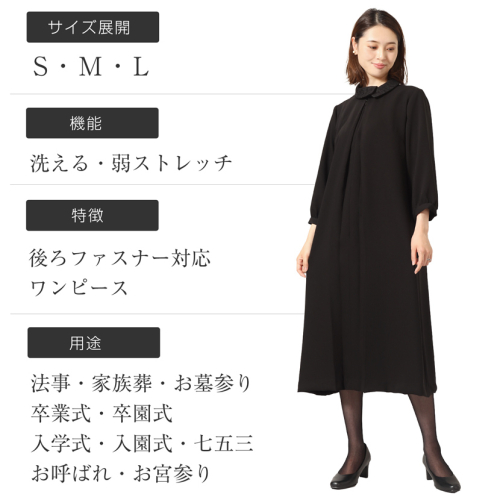 AI218 洗える!ワンピース ロールカラー BP-015-OP[ レディース フォーマル 黒 ブラック 冠婚葬祭 メアリーココ 長崎県 島原市 ]