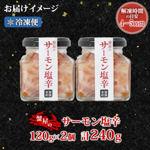 3112. サーモン塩辛 120g 2個 小分け サーモン 塩辛 鮭 さけ サケ いくら 漬け おつまみ アレンジ 海鮮 ご飯のお供 グルメ 冷凍 数量限定 送料無料 瓶 ギフト 北海道 弟子屈町