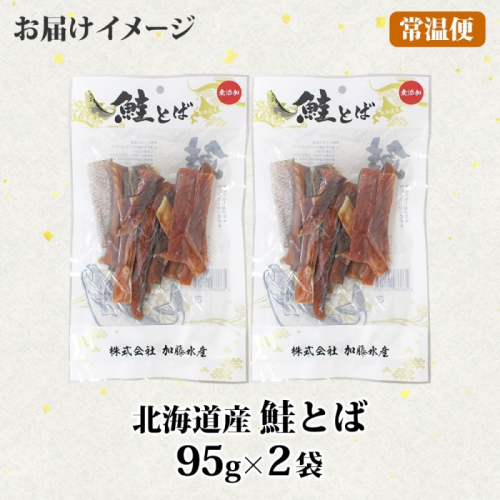 3122. 北海道産 鮭とば 95g 2袋 とば 鮭 秋鮭 シャケとば 干物 歯ごたえ おつまみ 酒の肴 肴 お酒のお供 北の幸 特産品 送料無料 高たんぱく グルメ ギフト お歳暮 加藤水産 北海道 弟子屈町